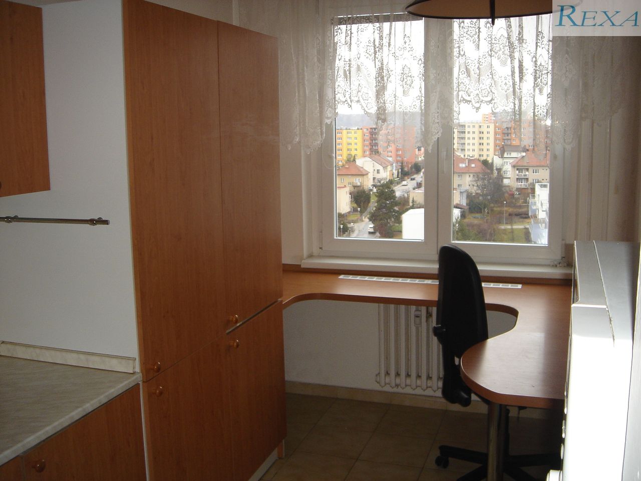 Byt je udržovaný, interiér po rekonstrukci, s původní kuchyňskou linkou a prostornou, prosklenou lodžií (cca 8m2).