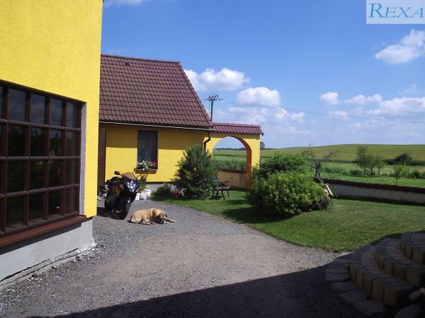 Druhý dům, který je využíván nyní k podnikání, na foto žlutá fasáda: dispozicí 2+1,vytápění plynovým kotlem.