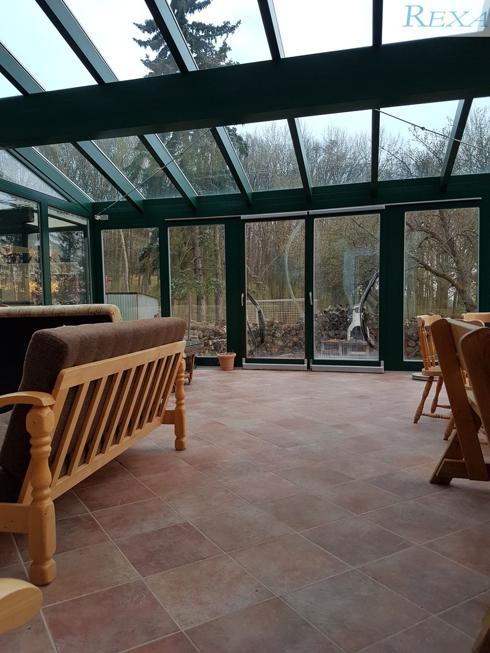 zimní zahrada, vstup na prostornou zatravněnou zahradu