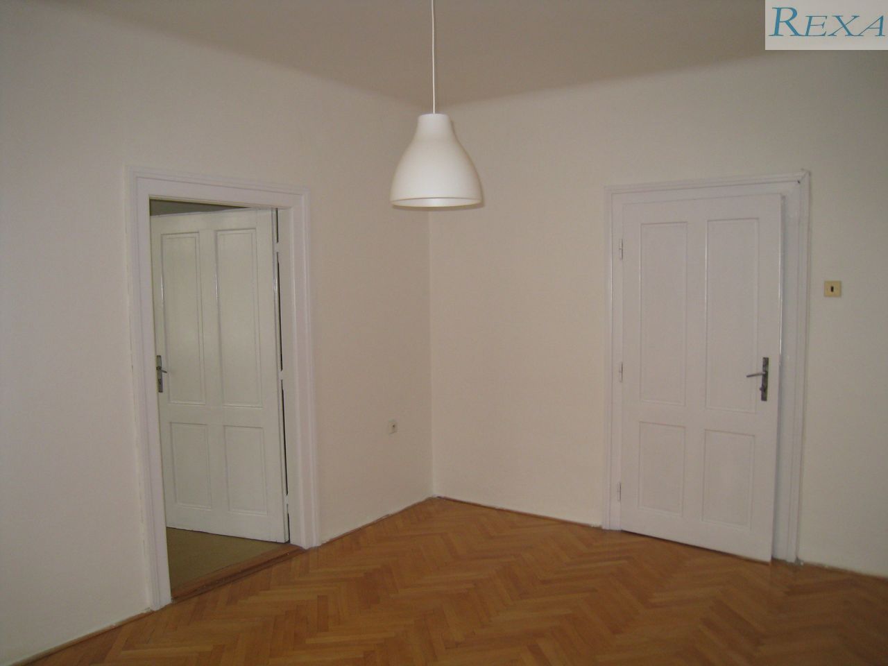 Byt je přízemní s výhledem do zahrady domu, dispozice 2+1, pokoje průchozí.